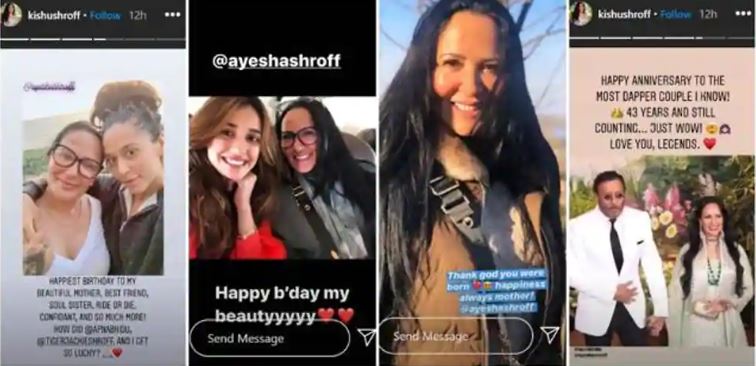 बेटी ने भी दी बधाई: बेटी कृष्णा ने बधाई देते हुए इंस्टाग्राम स्टोरी शेयर की। उन्होंने आयशा के साथ तस्वीर में लिखा, खूबसूरत मां, बेस्ट फ्रेंड को जन्मदिन की बधाई। टाइगर श्रॉफ की गर्लफ्रेंड दिशा पाटनी ने भी आयशा को विश करते हुए लिखा, हैप्पी बर्थ-डे माय ब्यूटी। टाइगर ने लिखा, आपके जन्म के लिए भगवान को धन्यवाद। आप हमेशा खुश रहें मां।