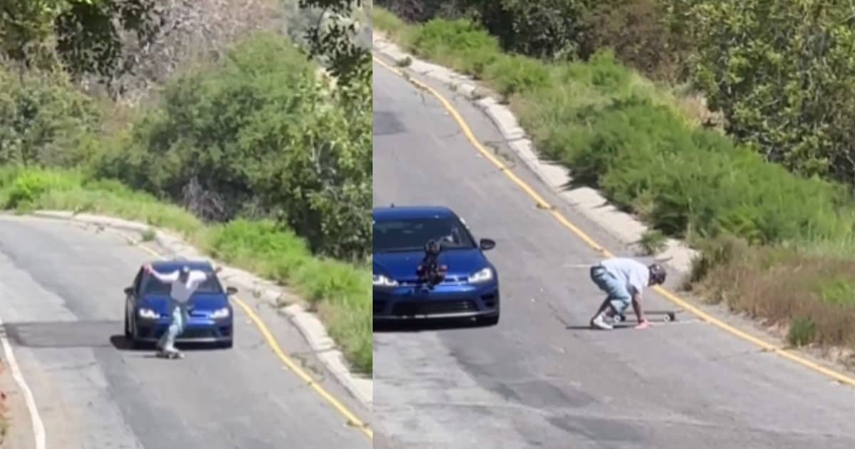 एक अजीब लेकिन हैरान कर देने वाले वीडियो एक शख्स की स्टंट करते हुए जान जाते जाते बची. बोर्ड स्केटिंग करने वाला यह शख्स कई जगह पर जोखिम भरी बोर्ड स्टेकिंग करता रहता है. लेकिन इस वीडियो में तो उसकी जान ही जाते जाते बची जब वह चलती कार के आगे स्केटिंग करते करते गिर गया.